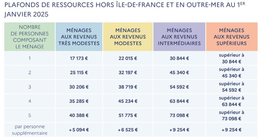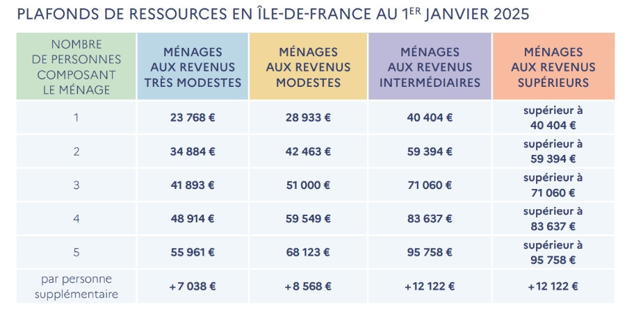 Les montants ci-dessous correspondent aux « revenus fiscaux de référence » des personnes composant le ménage. Si ces dernières ont des avis d’imposition distincts, le montant à prendre en compte est la somme de leurs « revenus fiscaux de référence ».